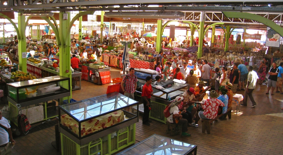 Tour de medio día realizado por la mañana. Visita a pie por el mercado tradicional donde los tahitianos venden pescado, frutas, artesanías, etc. A continuación se visita la Catedral de Papeete y el Centro Vaima para disfrutar de sus numerosas tiendas.